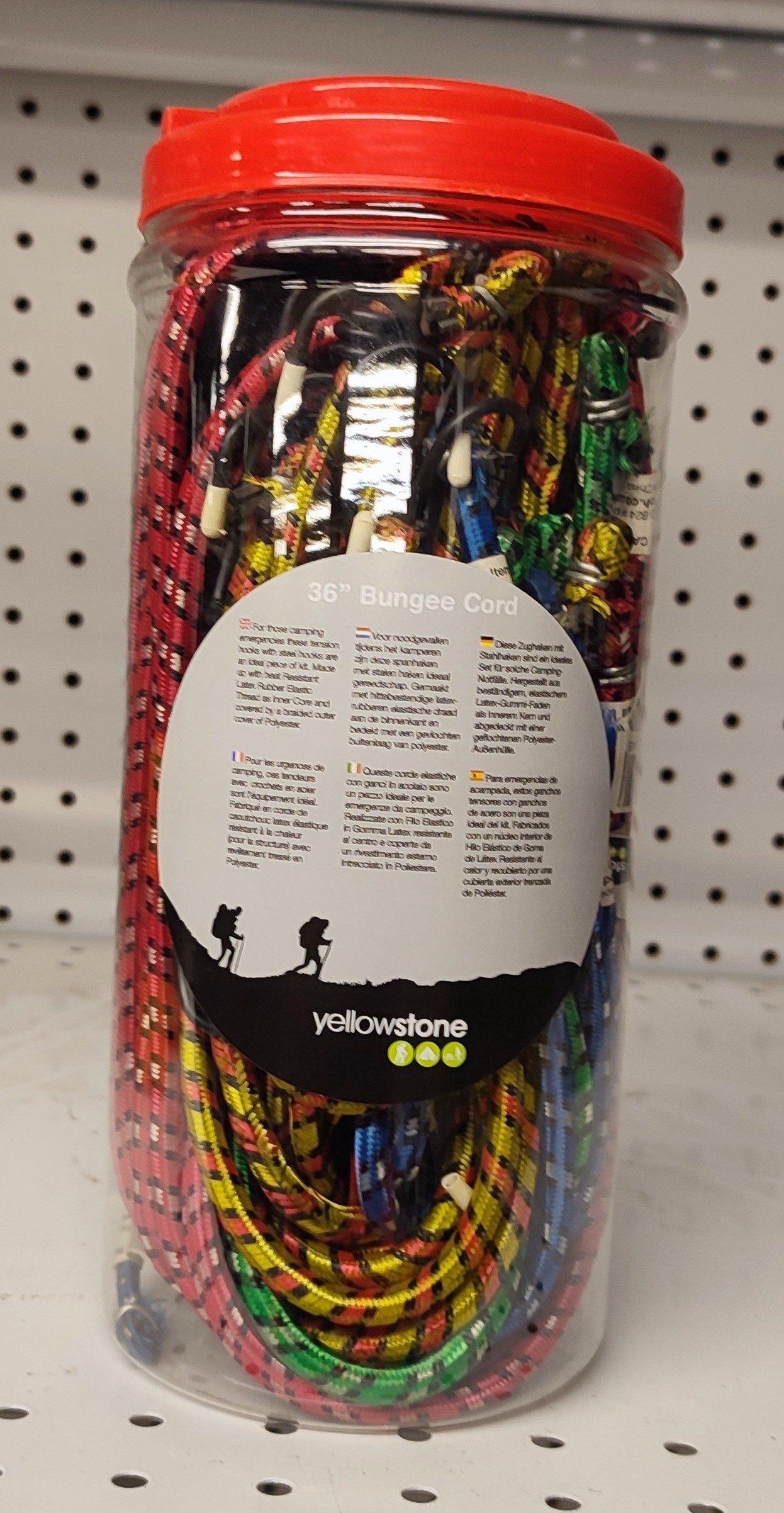 A tub of 36″ Bungee Cords