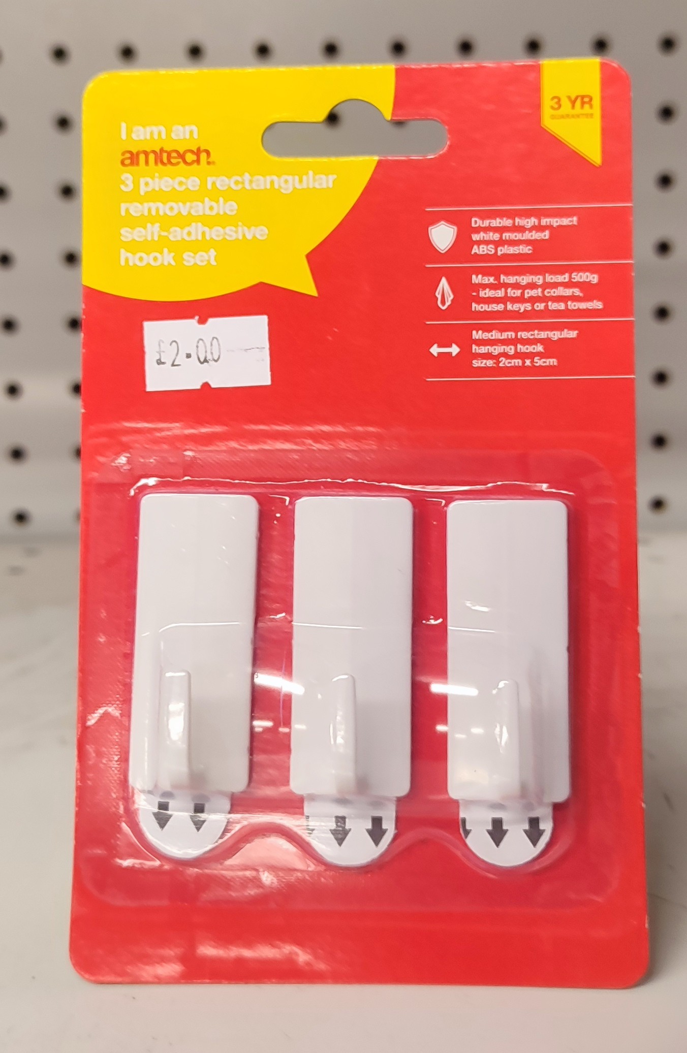 / Amtech 3 piece rectangular removable self-adhesive hook set