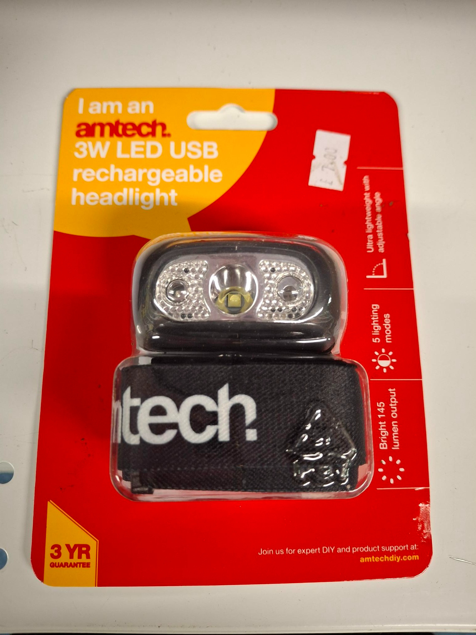 Amtech 3W Led USB Rechargeable Headlight