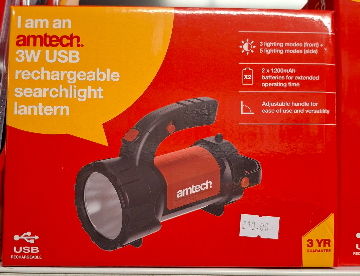 Amtech 3W USB Rechargeable Searchlight Lantern
